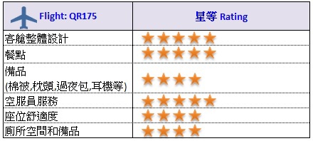 我給卡達航空4.5分以上的分數, 下次有機會還會再考慮卡達喔