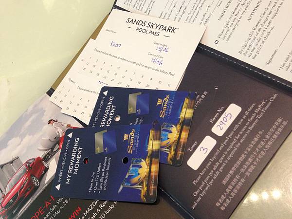 拿到房卡和頂樓游泳池的PASS