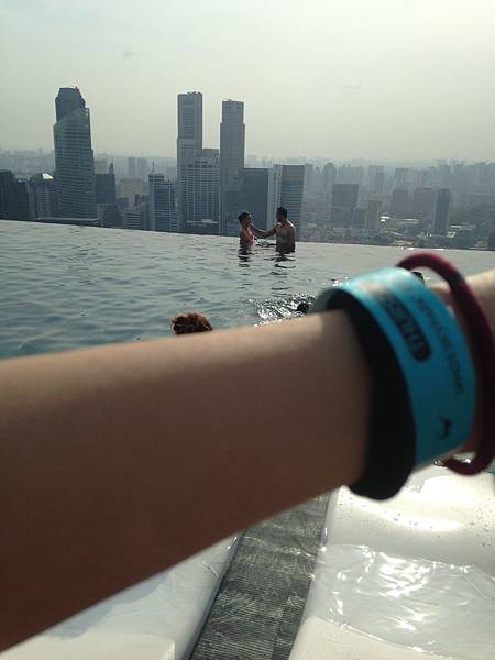 在公園座座逛逛後真的太熱了!!! 我們就一路步行到金沙酒店(跟神經病一樣, 好遠) ><