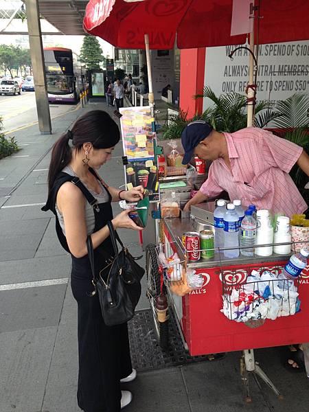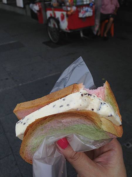新加坡很多這種土司夾冰淇淋,一個1圓新幣, 我竟然來買到1.5新幣@@