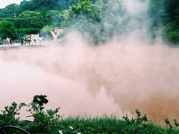 血池地獄主要是因為這裡的地質含鎂和鐵,導致溫泉的顏色呈現紅色