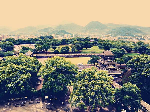 進入熊本城會先通過護城河,步道旁都種了兩排櫻花,春天來是肯定很美